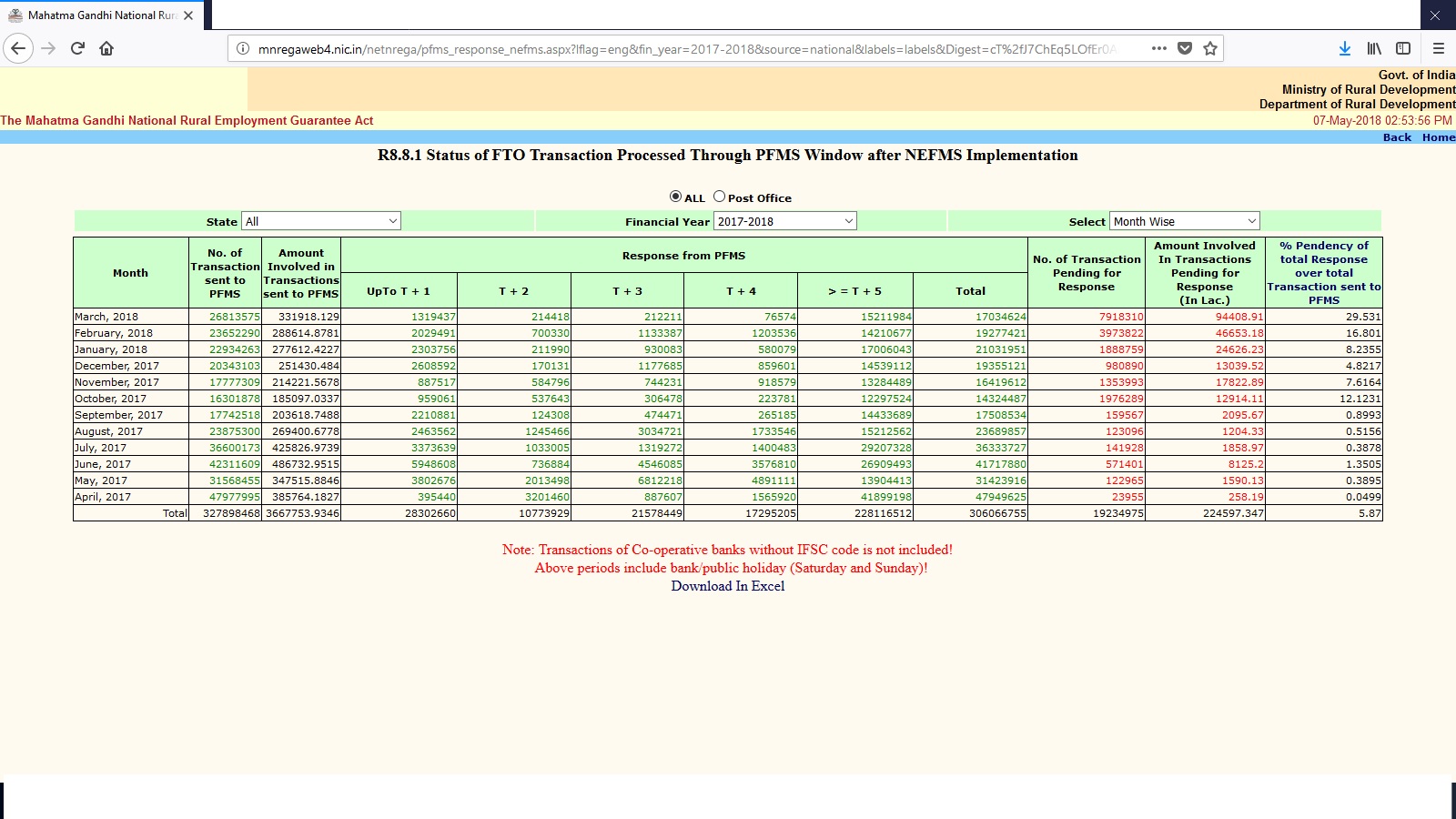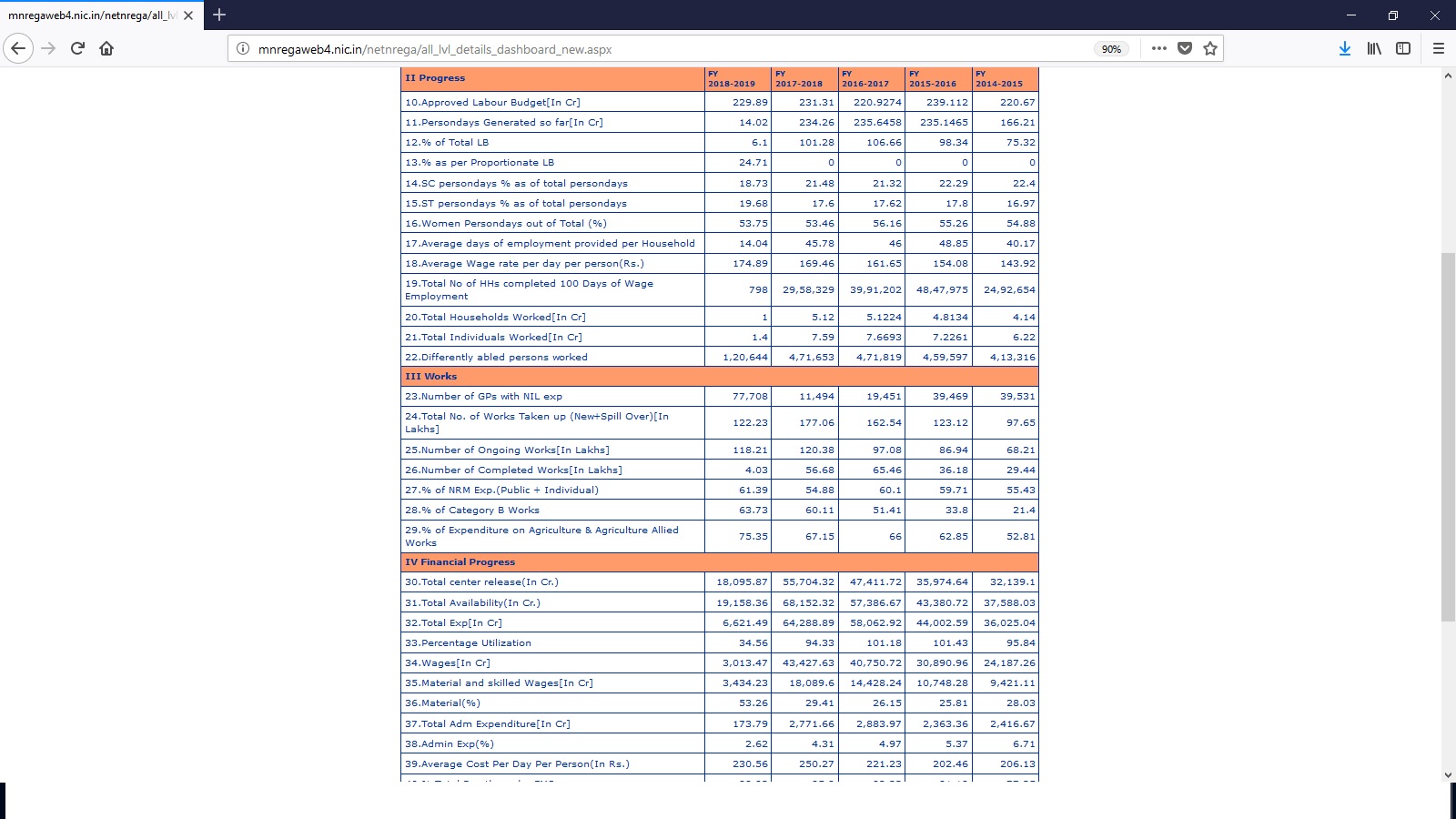 • Person-days of work generated as a proportion of total labour budget was 75.32 percent in 2014-15, 98.34 percent in 2015-16, 106.66 percent in 2016-17 and 101.28 percent in 2017-18. It, therefore, shows that the gap between MGNREGA jobs generated (in terms of person-days) and the number of person-days of work as predicted by the authorities has reduced over the years and the former exceeded the latter in 2016-17 and 2017-18.