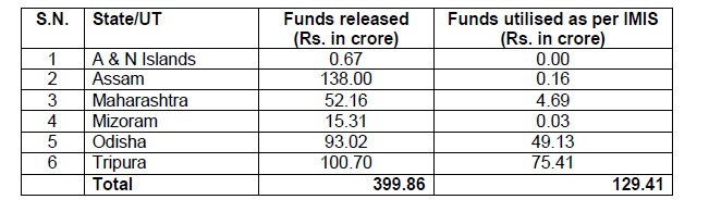 • Although the funds released under the Swachh Bharat Kosh of SBM (G) for Andaman & Nicobar Islands, Assam, Maharashtra, Mizoram, Odisha and Tripura was altogether Rs. 399.86 crore, the funds utilised as per the Integrated Management Information System (IMIS) was Rs. 129.41 crore. It may be noted that the Swachh Bharat Kosh was set up in 2015 by the Ministry of Finance for channelizing the voluntary contribution from individuals and corporate sectors in response to the call given by Hon'ble Prime Minister to achieve Swachh Bharat by 2nd October, 2019.