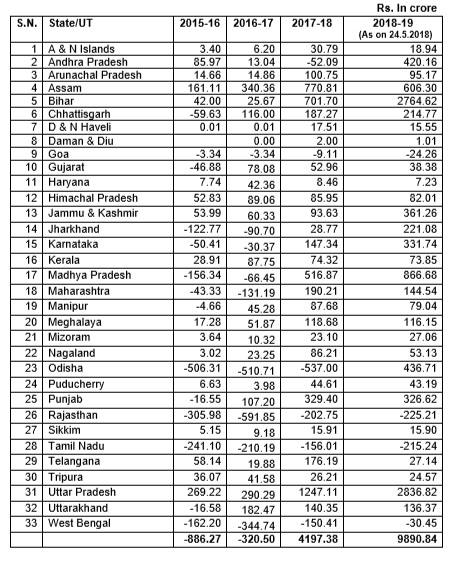 • Unspent balances under the SBM (G) was Rs. -886.27 crore in 2015-16, Rs. -320.50 in 2016-17, Rs. 4,197.38 crore in 2017-18 and Rs. 9,890.84 crore in 2018-19 (as on 24th May, 2018). States like Andhra Pradesh, Assam, Bihar, Madhya Pradesh, Odisha, Punjab, Jammu & Kashmir and Uttar Pradesh have large amount of unspent balances under the programme. As per the MDWS, the reasons for high unspent balance in some states under SBM (G) are: a. Inadequate capacity at grass root level; and b. Existence of revolving funds and leveraging other sources of credit. In its reply to a query by the Standing Committee, the MDWS has said that higher unspent balance in states automatically reduces their eligibility for further fund release in the subsequent year. Due to this specific modality and inbuilt provision in the SBM (G) guidelines, states observe better financial discipline. Strict monitoring methods are adopted to obtain the progress of each district on real time basis using the online monitoring system. Regular review meetings/ video conferences etc. are organized by the MDWS to discuss issues relating to implementation of the SBM (G) and utilization of funds