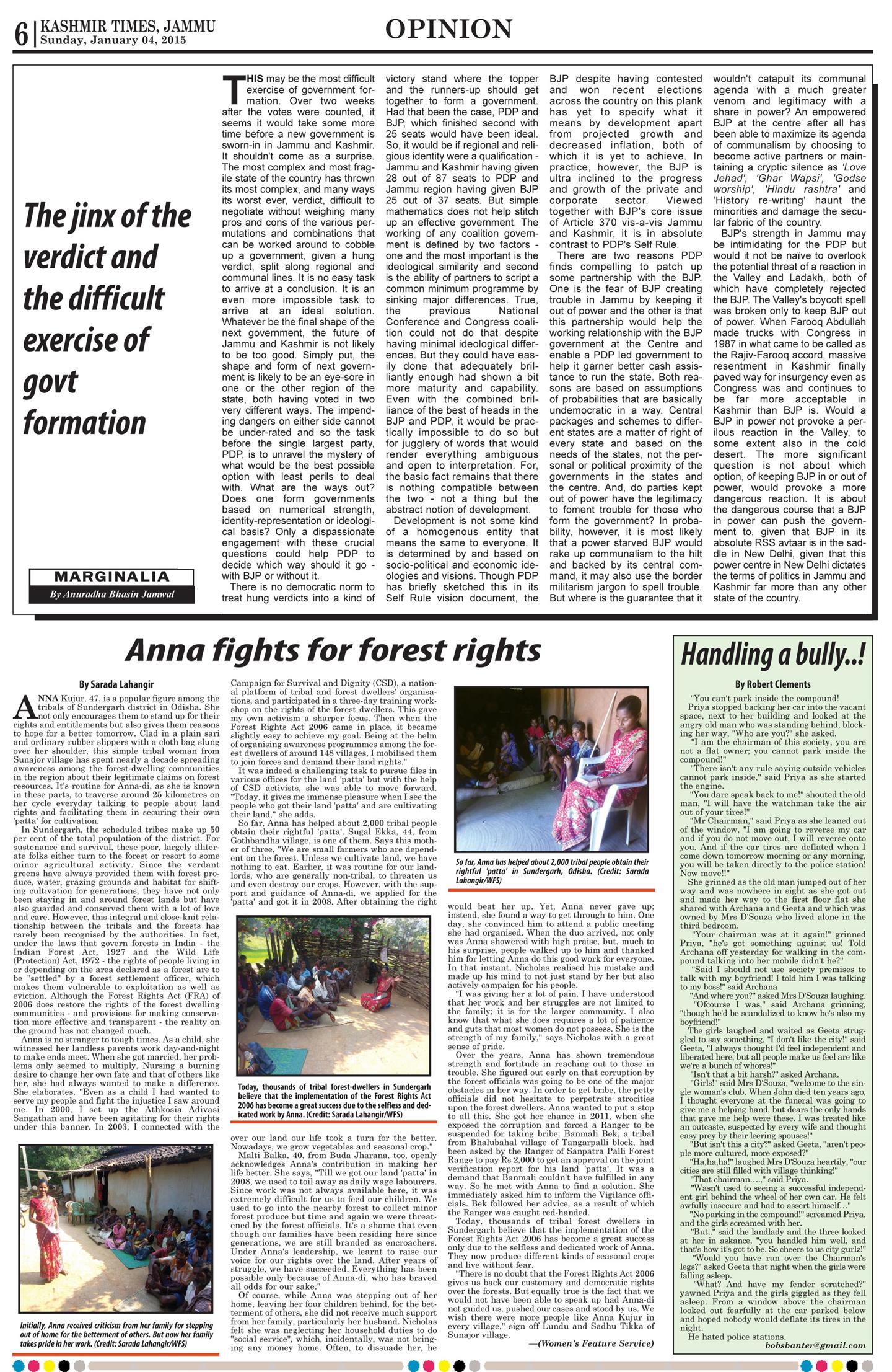 - Article 6: Anna fights for forest rights -Sarada Lahangir, Kashmir Times, Jammu, 4 January, 2015