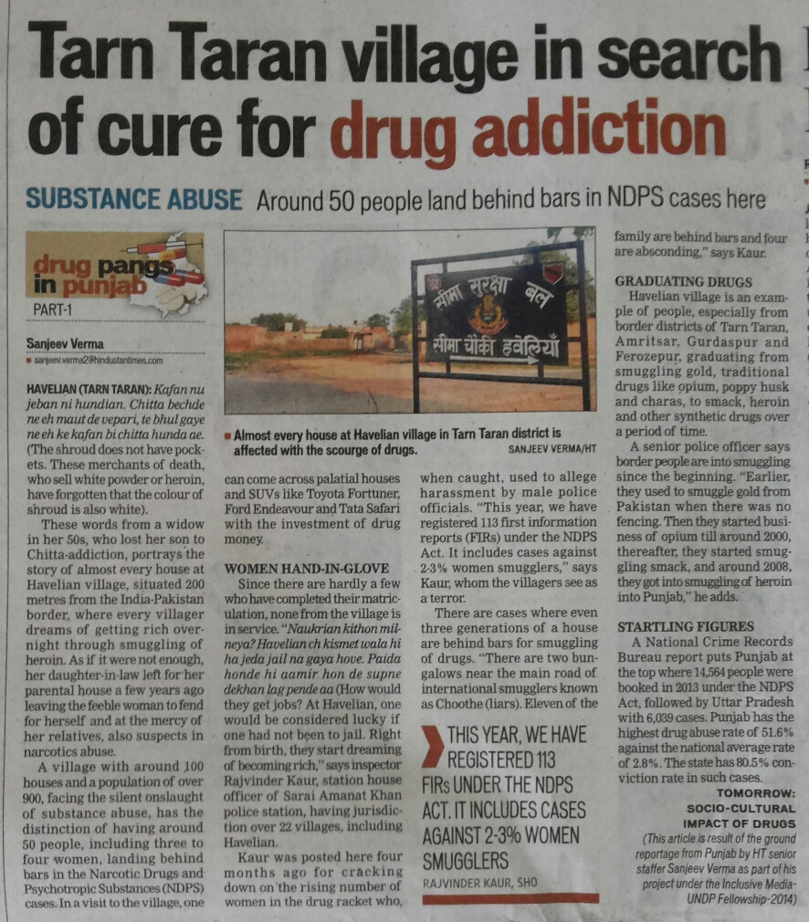 - Article 1: Tarn Taran village in search of cure for drug addiction-Sanjeev Verma, September 28, The Hindustan Times, Chandigarh