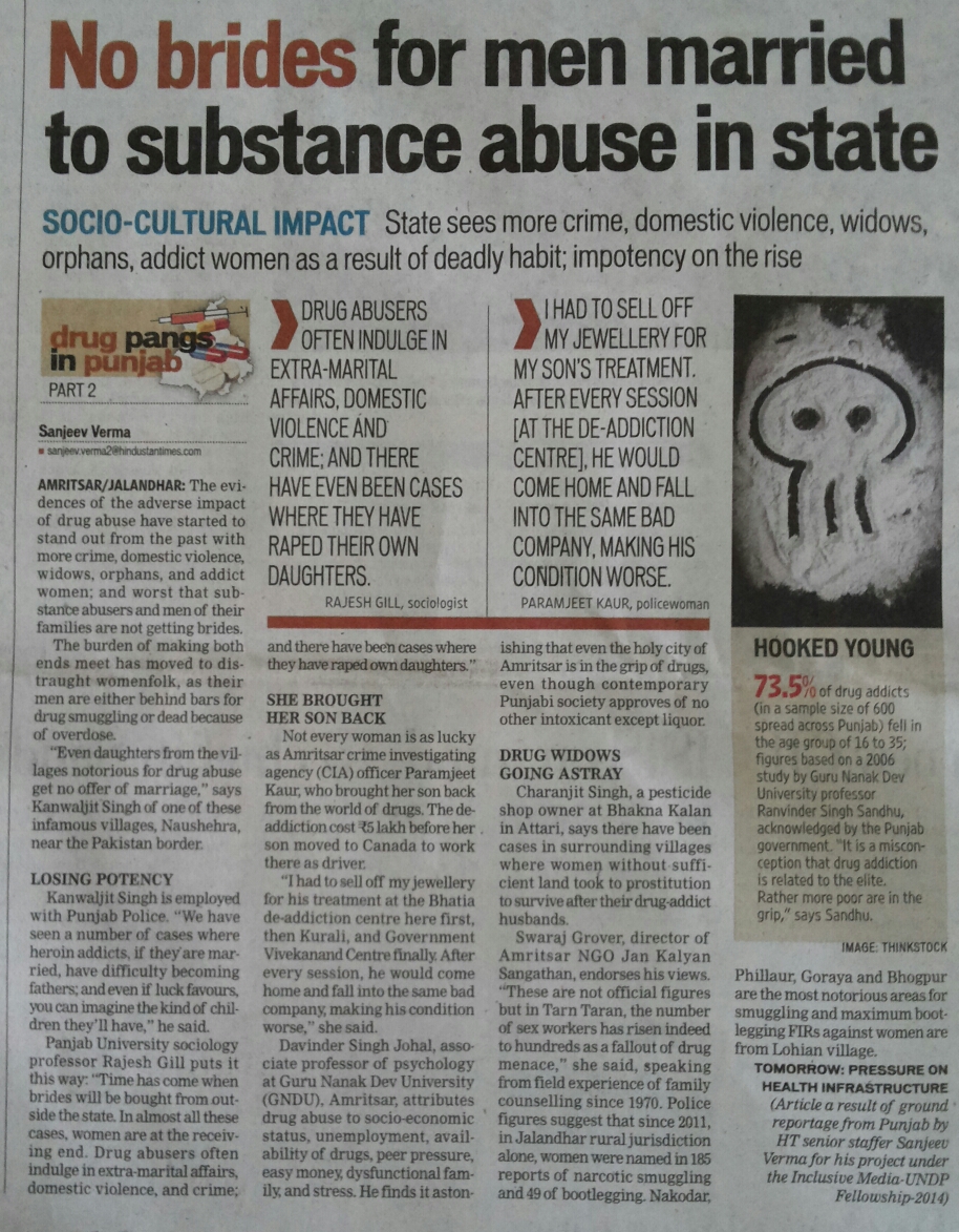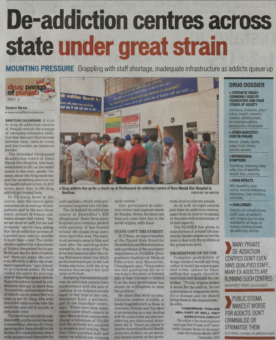 - Article 3: De-addiction centres across Punjab under great strain-Sanjeev Verma, September 30, The Hindustan Times, Chandigarh