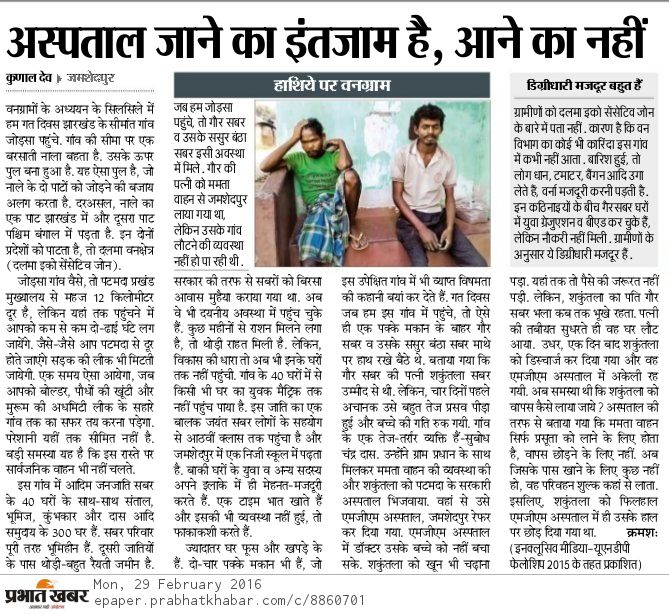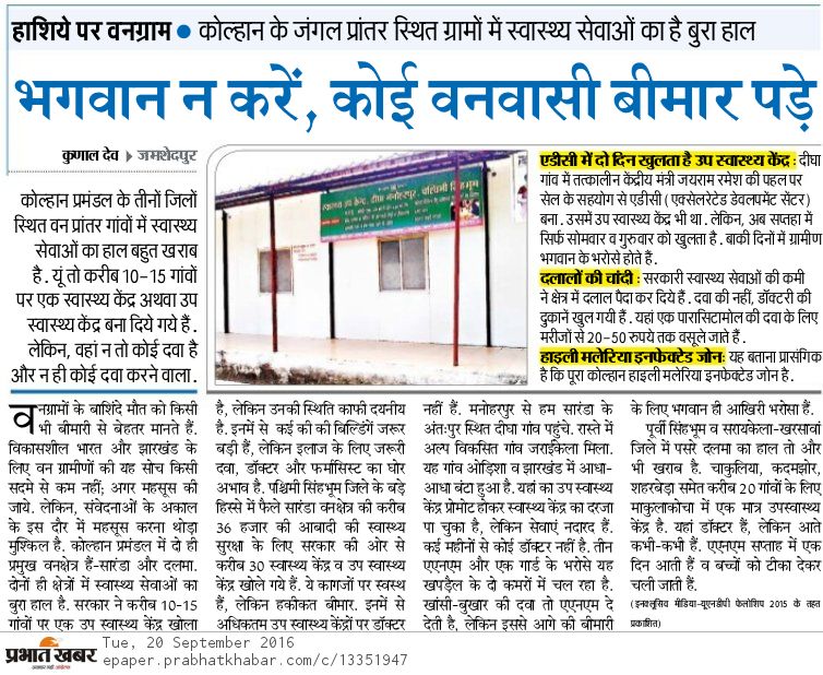 - 10. भगवान ना करें, कोई वनवासी बीमार पड़े -Kunal Deo, प्रभात खबर, 20 सितंबर 2016
