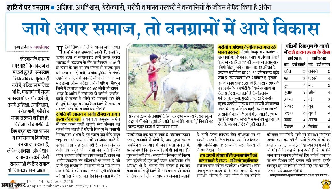 - 12. जागे अगर समाज, तो वनग्रामों में आये विकास -Kunal Deo, प्रभात खबर, 14 October, 2016