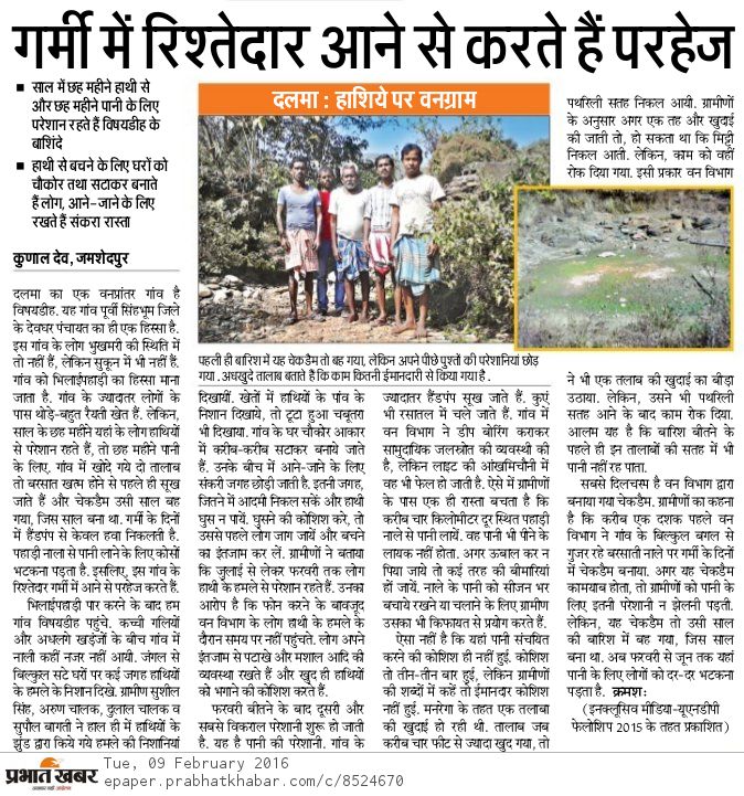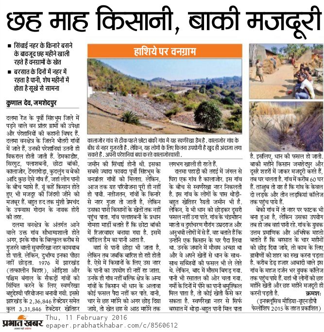 - 4. छह माह किसानी, बाकी मजदूरी -Kunal Deo, 11 February, 2016, प्रभात खबर (जमशेदपुर)