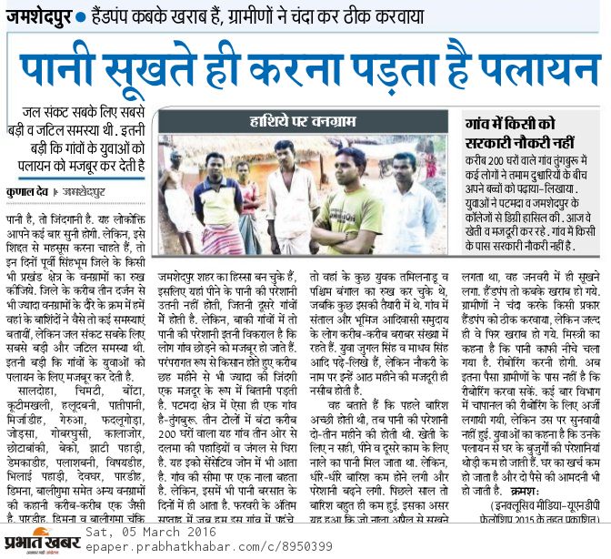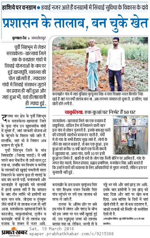 - 6. पानी सूखते ही करना पड़ता है पलायन -Kunal Deo, 5 March, 2016, प्रभात खबर