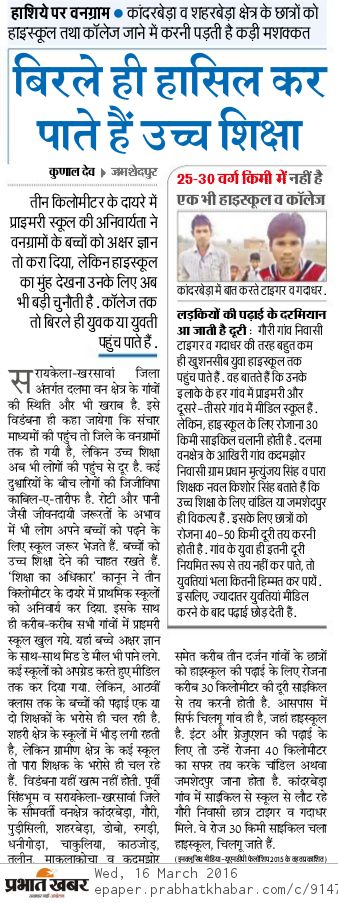 - 7. विरले ही हासिल कर पाते हैं उच्च शिक्षा -Kunal Deo, 16 March, 2016, प्रभात खबर