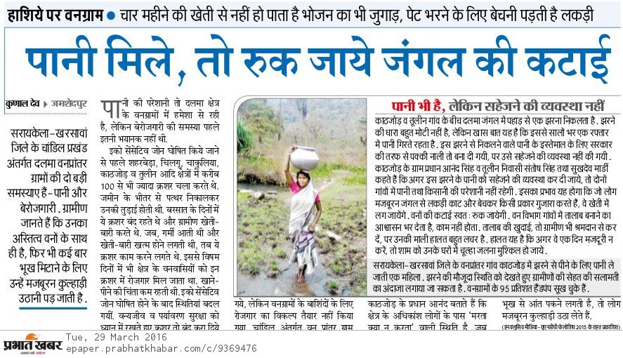 - 9. पानी मिले तो रुक जाय जंगल की कटाई -Kunal Deo, 29 मार्च 2016, प्रभात खबर