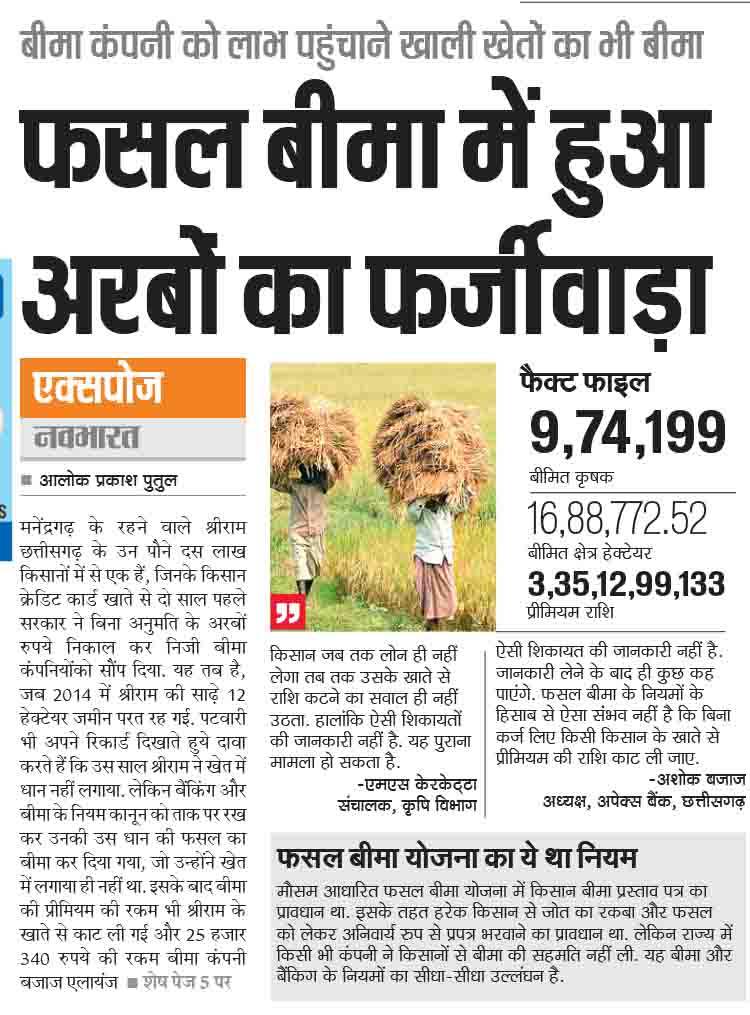 - 1 [b]. फसल बीमा में हुआ अरबों का फर्जीवाड़ा- Alok Prakash Putul, 17 मई 2016, नवभारत (Chhattisgarh)