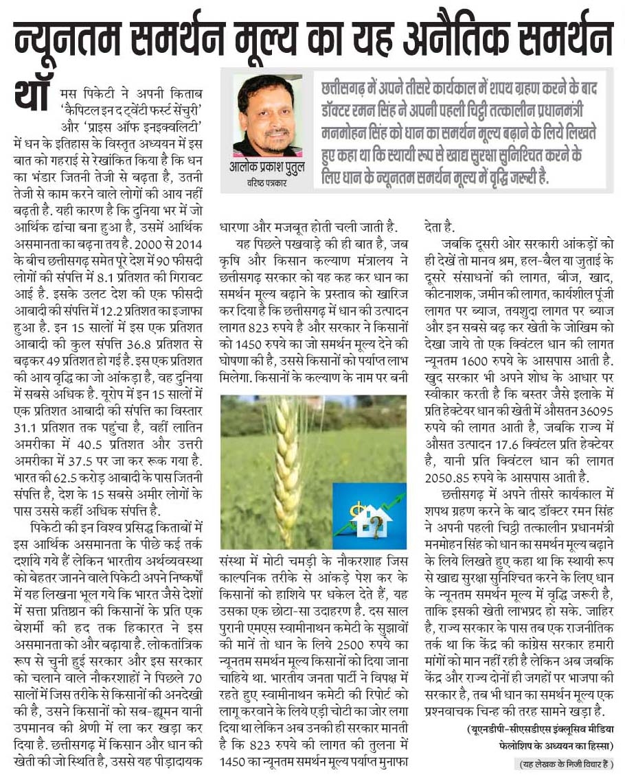 - 6. न्यूनतम समर्थन मूल्य का यह अनैतिक समर्थन -Alok Prakash Putul, नवभारत (हिंदी दैनिक), 14 अक्टूबर 2016