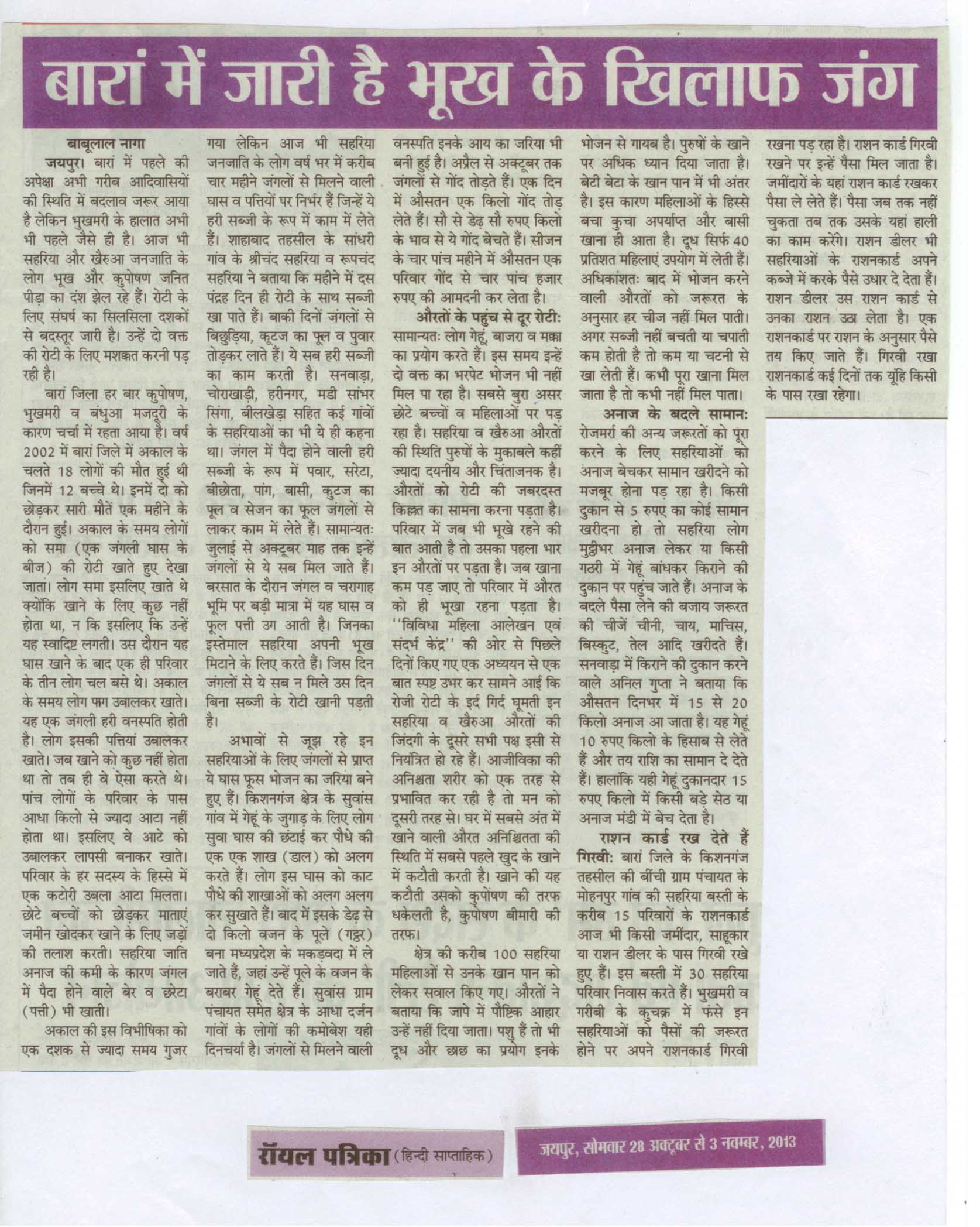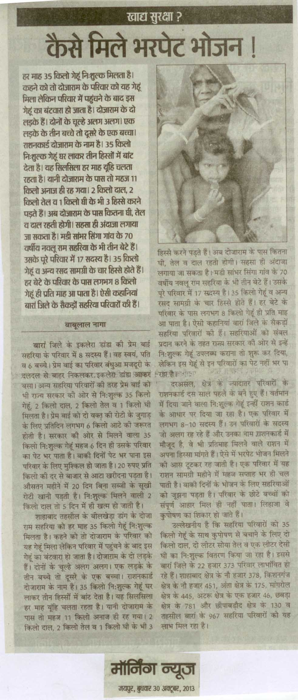 - Article 12: भूख से जंग लड़ते सहरिया—जनज्वार डॉटकॉम 19 अक्तूबर 2013