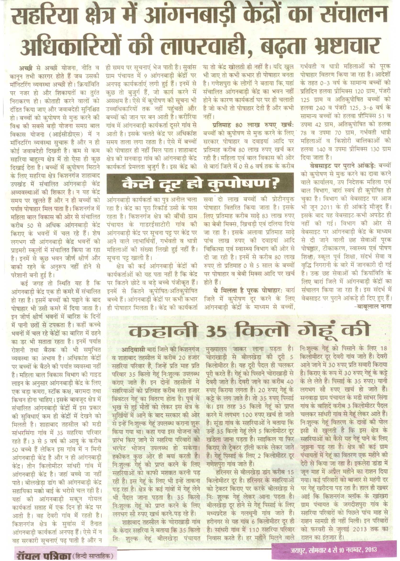 - Article 7: कैसे मिले भरपेट भोजन–मार्निंग न्यूज, 30 अक्तूबर 2013