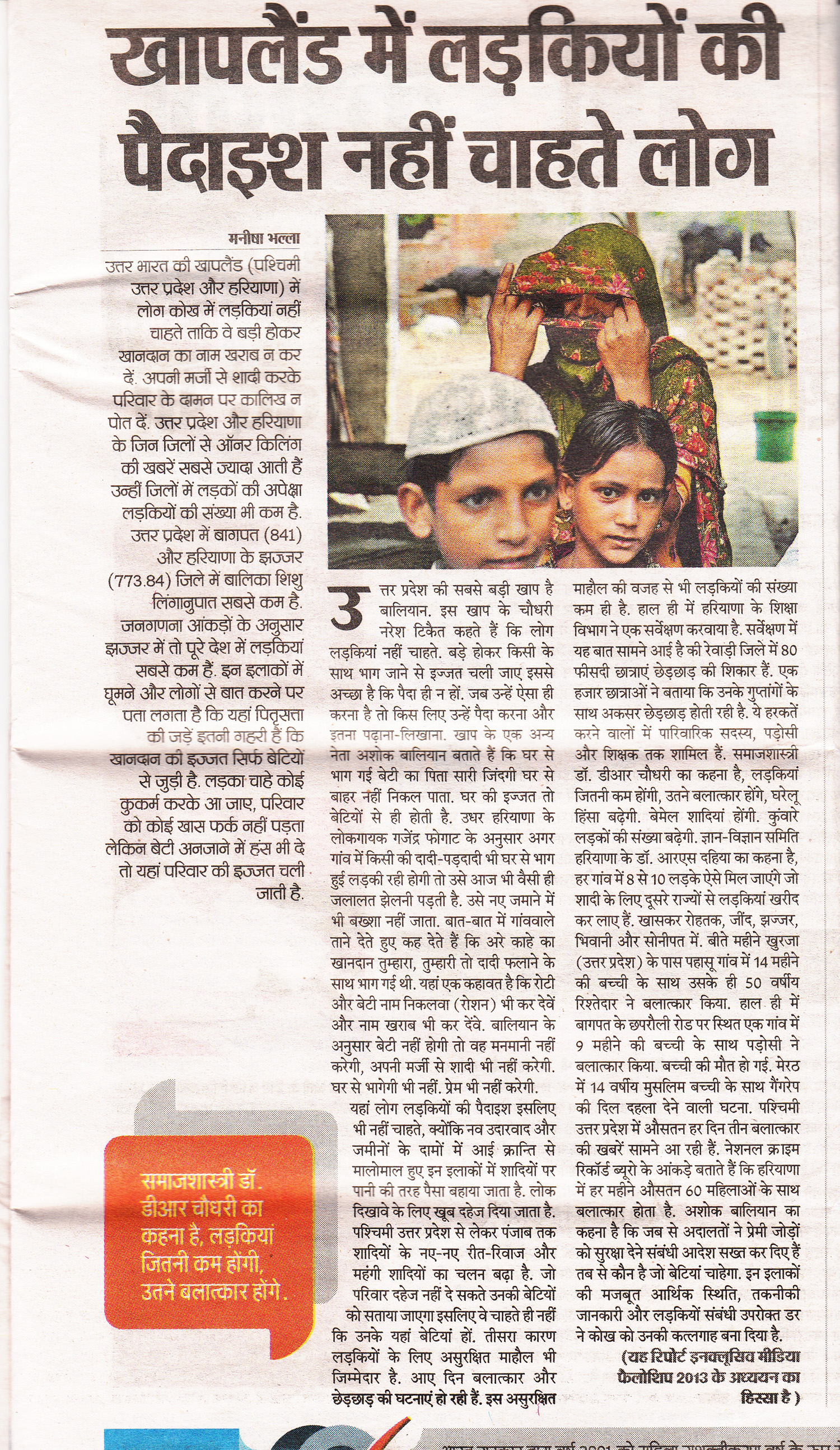 - Article 7: खापलैंड में लड़कियां नहीं चाहते लोग, पंचायतनामा अखबार, 19 अगस्त- 25 अगस्त 2013