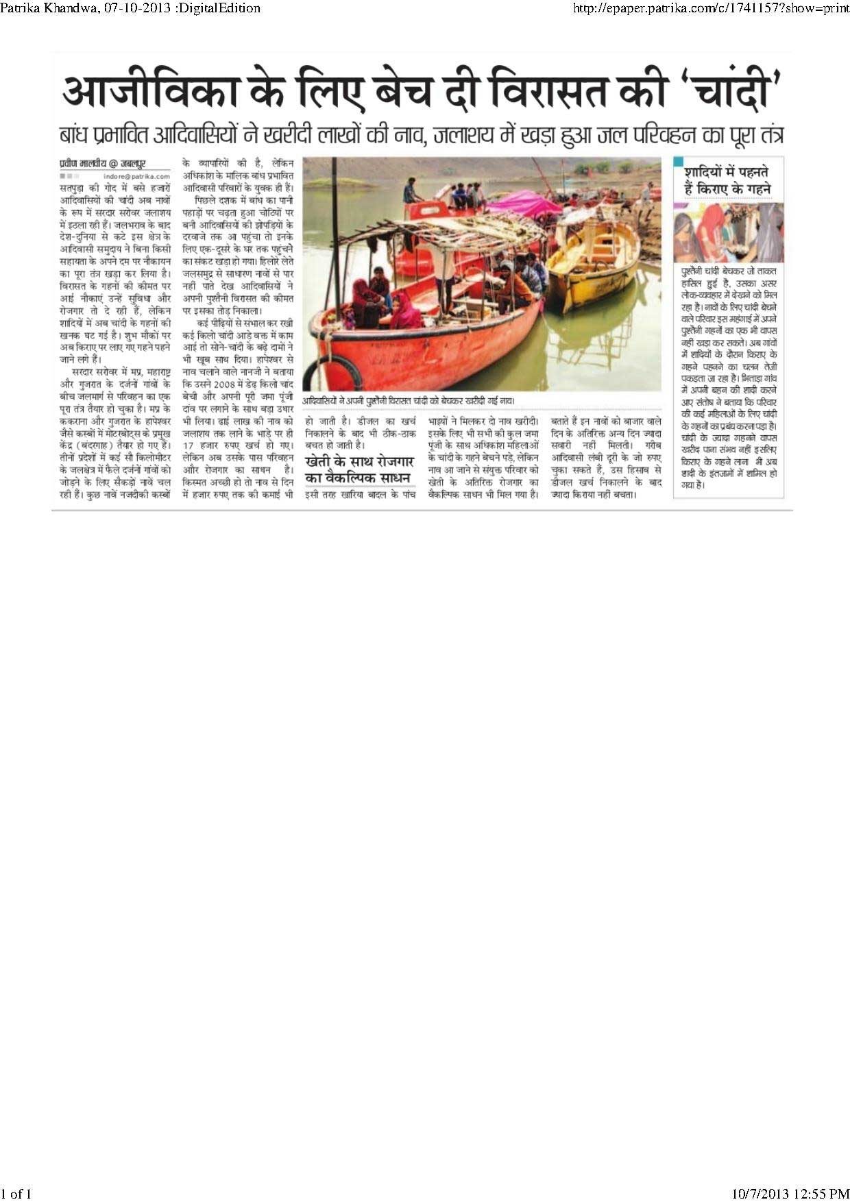 - Article 2: 20 में खरीदी, 150 में बिक्री मछुआरों का शिकार शेष – पत्रिका 13 जून 2013