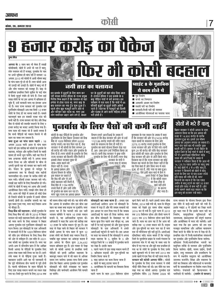 - Article 6: नौ हजार करोड़ का पैकेज फिर भी कोसी बदहाल- अंगभारत (बांका) 26 अगस्त 2013