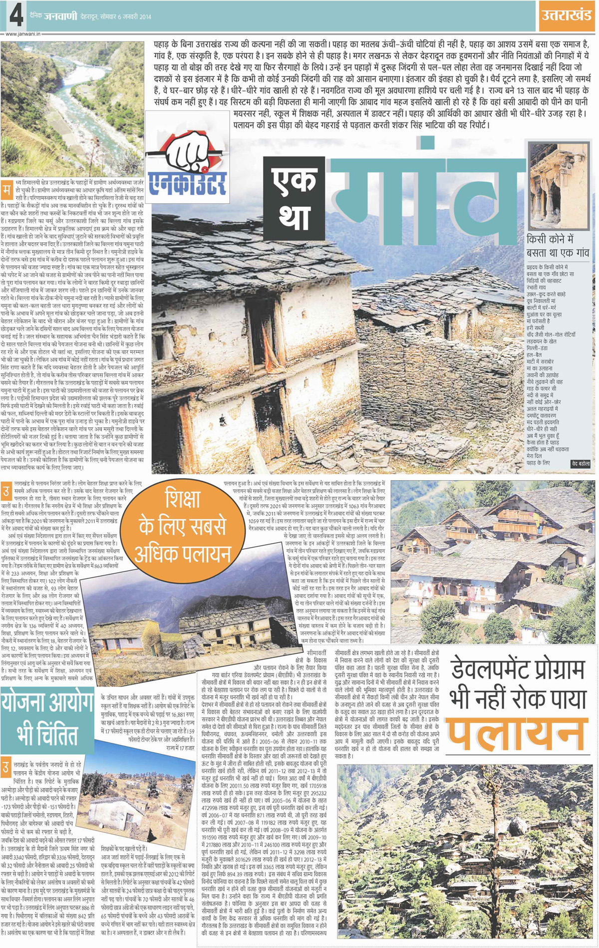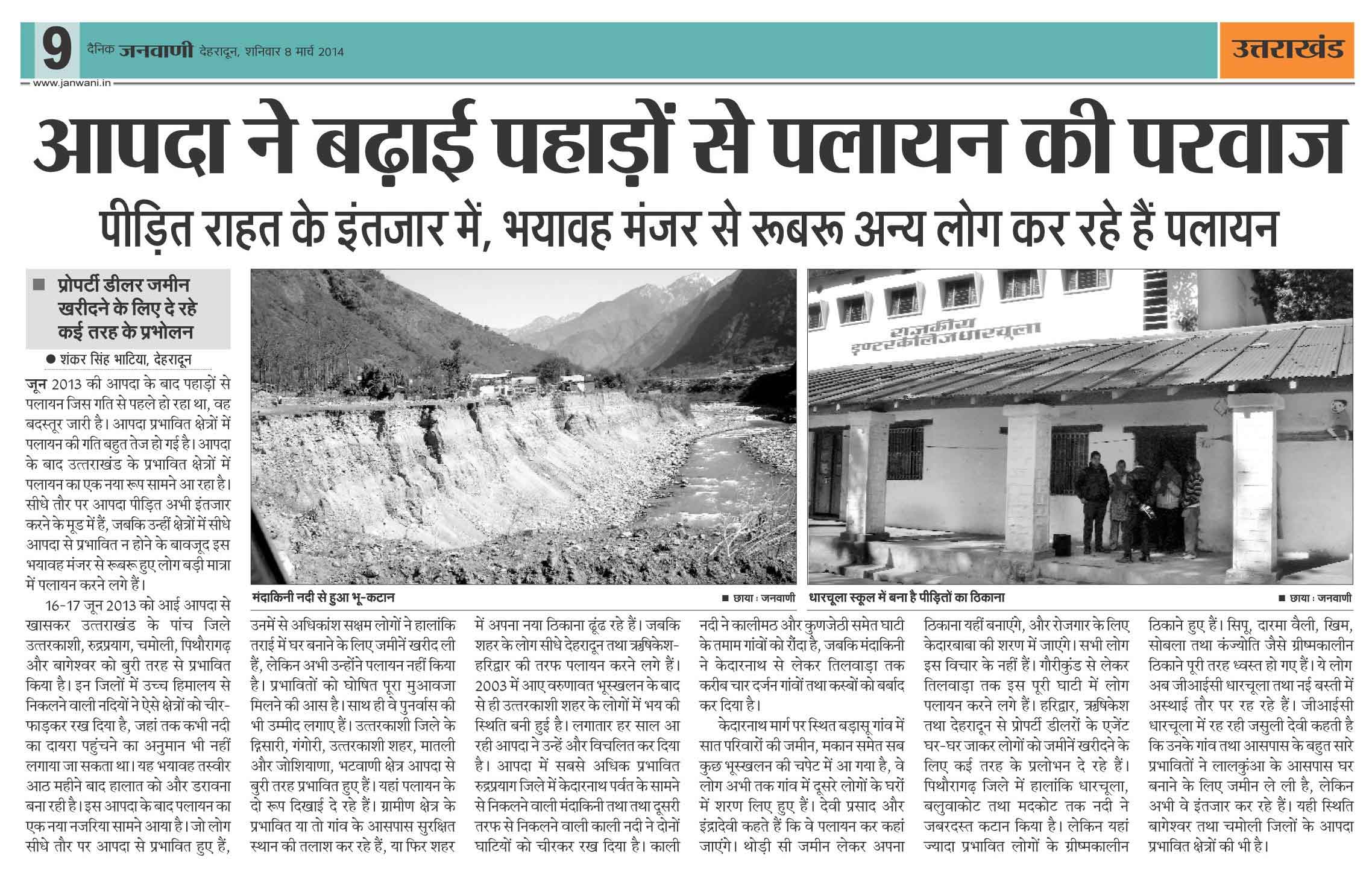 - Article 2: आपदा ने बढ़ायी पहाड़ों से पलायन की परवाज- दैनिक जनवाणी 8 मार्च 2014