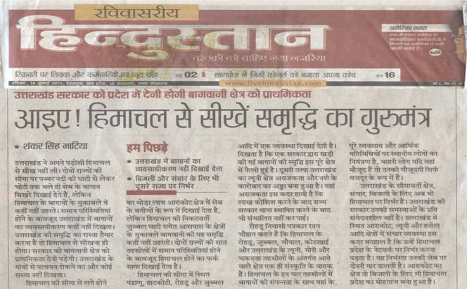 - Article 5: आईए, हिमाचल से सीखें समृद्धि का गुरुमंत्र– हिन्दुस्तान 14 जुलाई 2013
